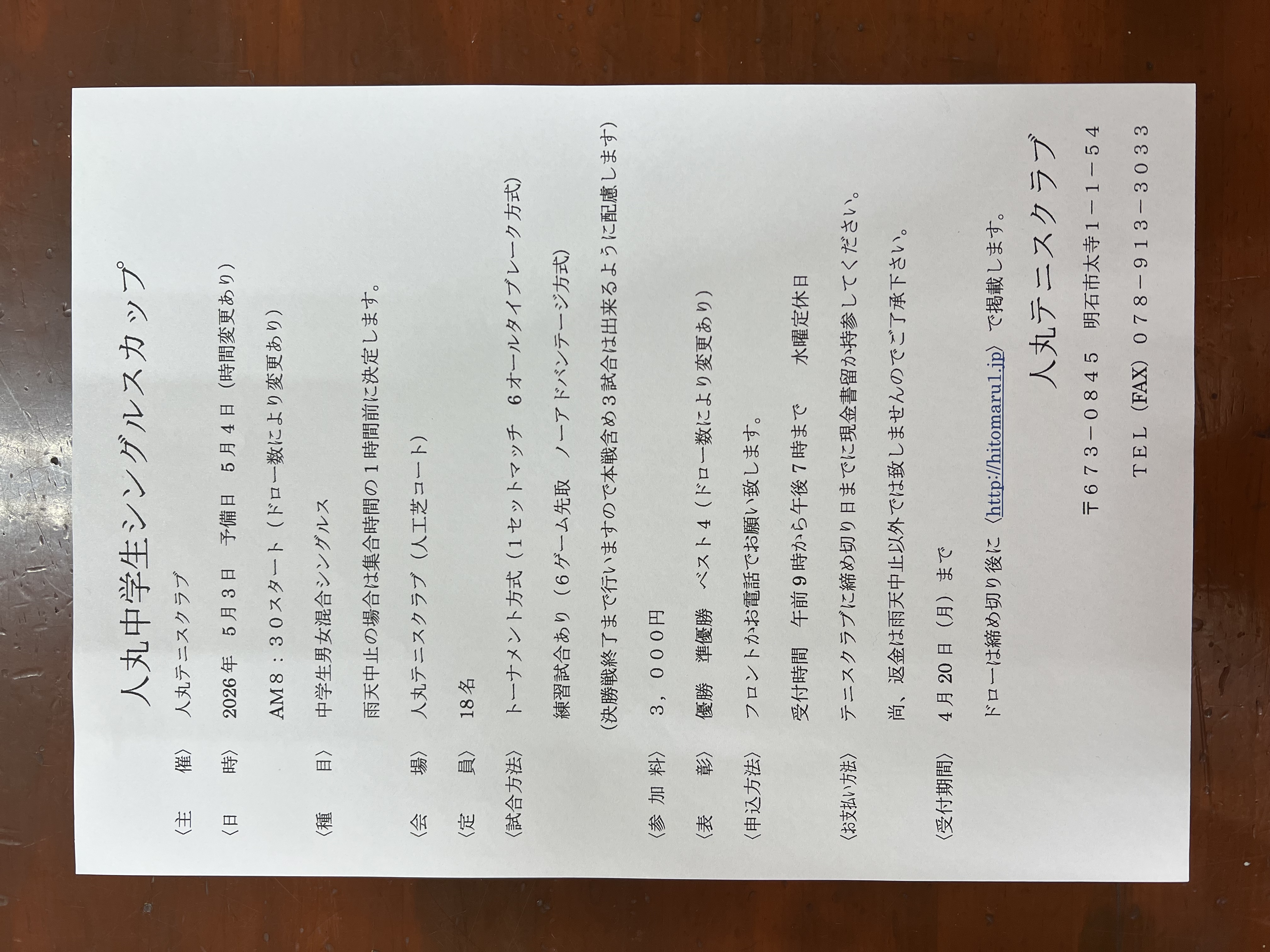 人丸テニスクラブ主催‼男女混合シングルスカップ🏆